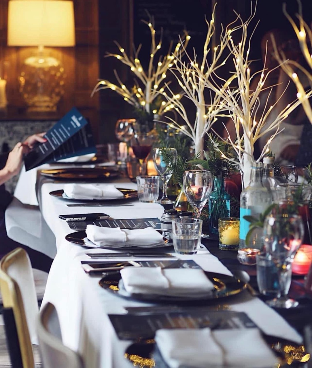 Tuck yourself away in this intimate, light-filled space, designed for quiet conversation and relaxed dining. Here, large windows frame a view of the garden, and enjoy the gentle shimmer of twinkling lights among the trees as dusk settles.